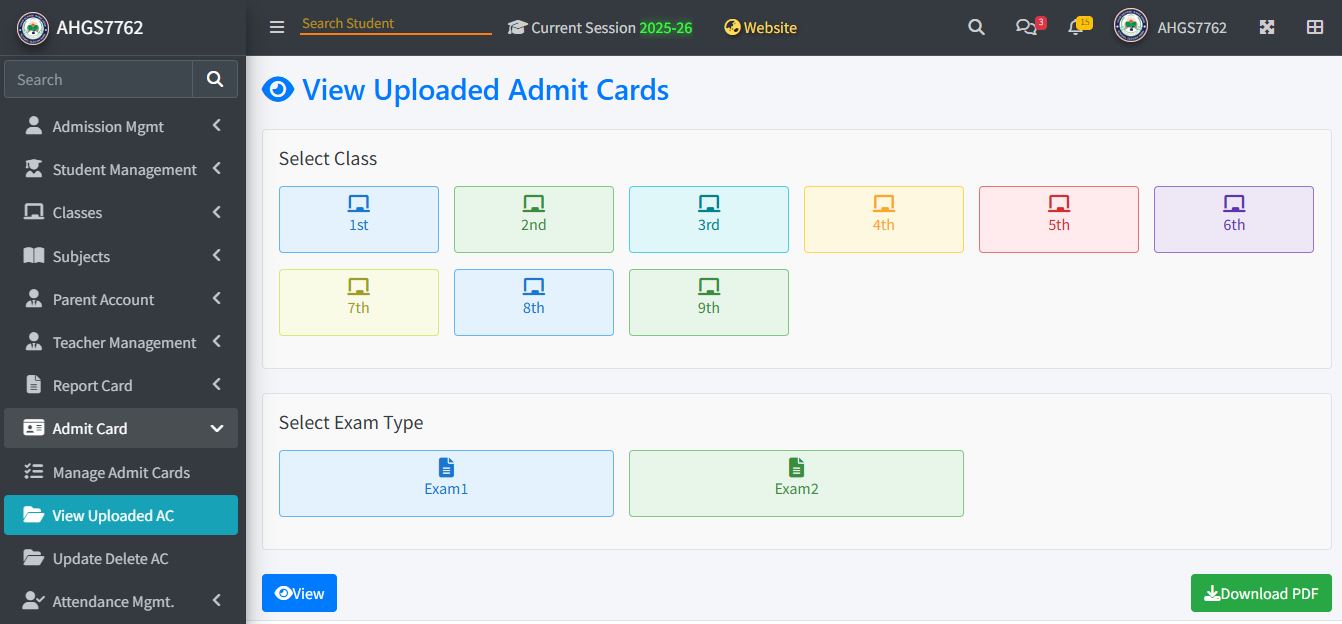 Automated admit card generation with customizable templates and secure distribution.